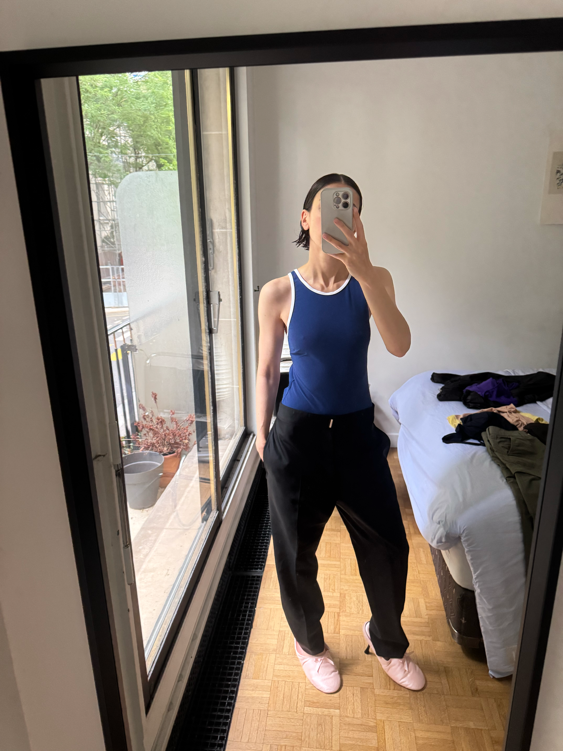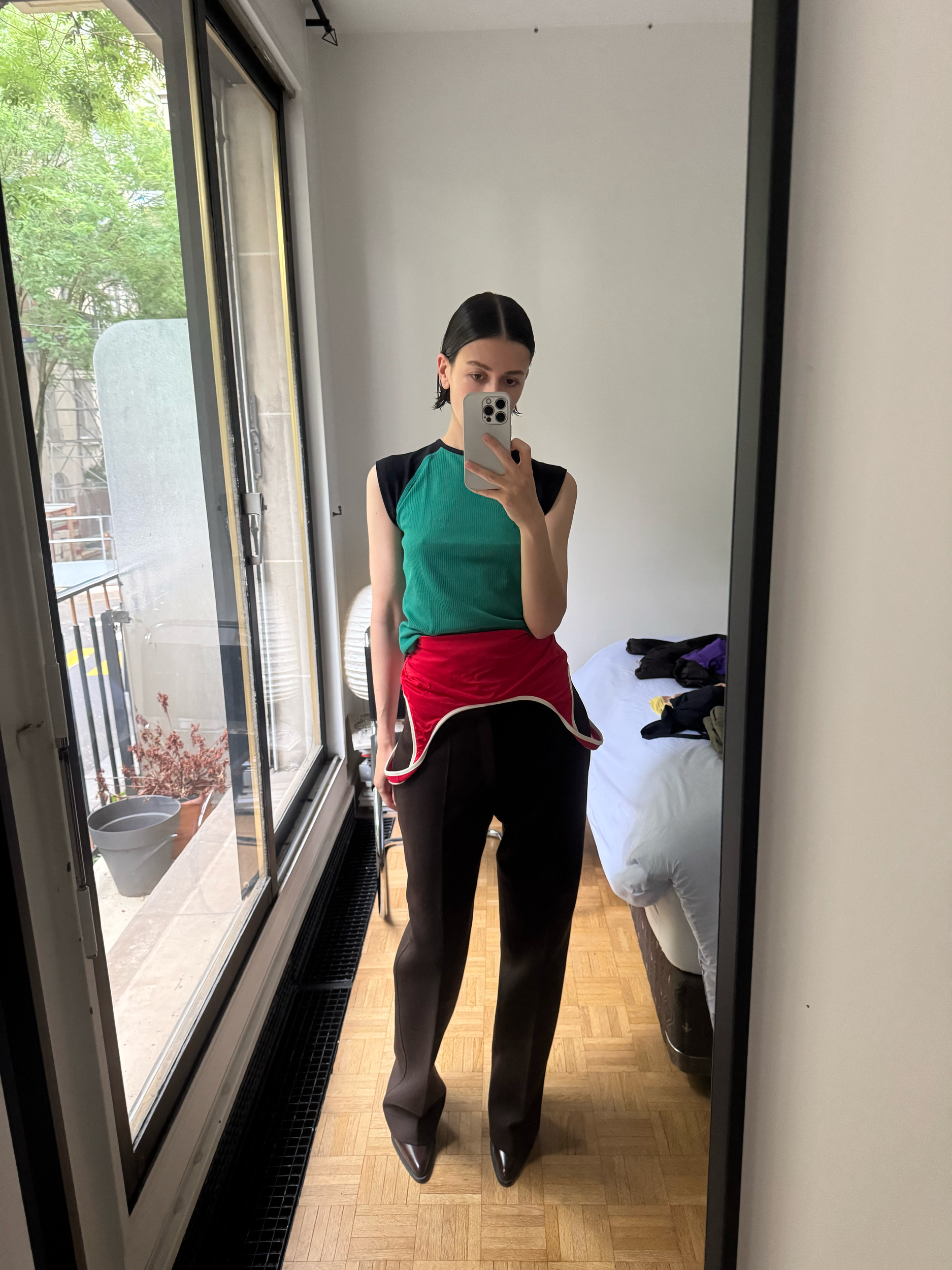 I’m wearing this newly in Baserange raglan shirt, this French supermarket (ily) bathing suit (the red is sold out, this one’s the closest I found, but I enjoy this green one and this Eres one too, if you really wanna go that way) paired with yet another Jil wool pant, don’t judge me.